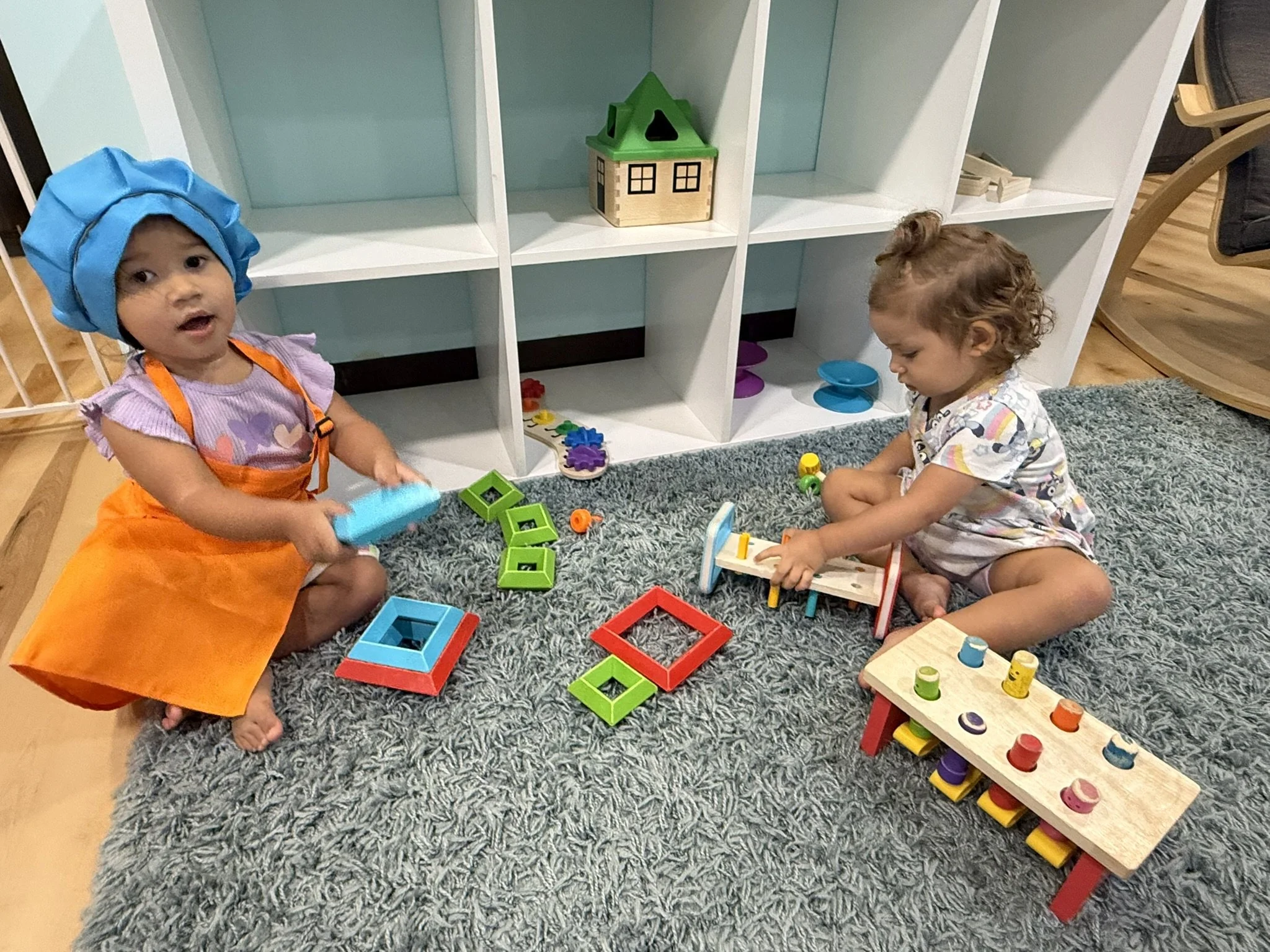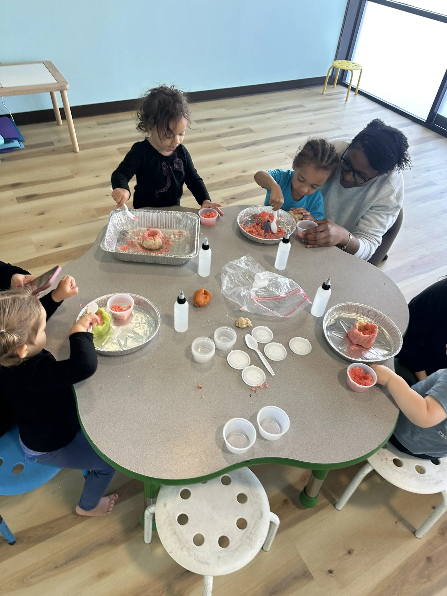 Snacks and drinks can be enjoyed at our tables in the front, but not in the play area or classroom.